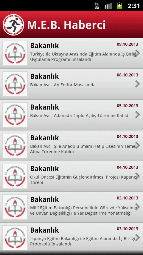 Milli Eğitim Bakanlığı ile tüm İl ve İlçe Milli Eğitim Müdürlükleri duyuru ve haber takip uygulamasıdır.